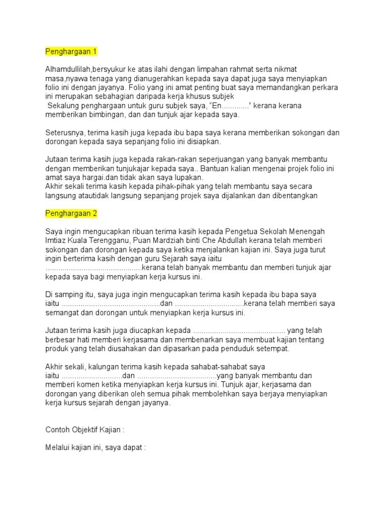 Contoh Penghargaan Kerja Kursus Sejarah Tingkatan 3 / Contoh Rumusan